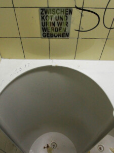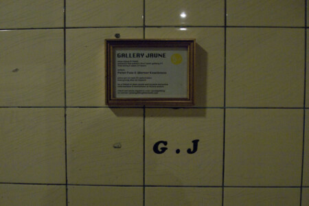 Jean Jaune is a fictional gallerist located in Paris, Moscow, Tokyo and Bern. Jean Jaune Galerie is an anonymous promoter of socially engaged art. Collective Mami and Jean Jaune Galerie have been collaborating since 2010. For Jean Jaune, Collective Mami has transformed various public toilets into art, a basic need. In 2013, the disused urinal at Fricktreppe 12 was discovered and unofficially operated as a mini-gallery until 2016. The Pissoir Galerie was open to everyone 24 hours a day, 7 days a week.